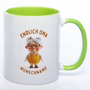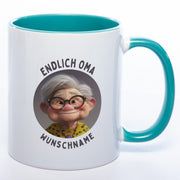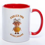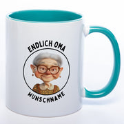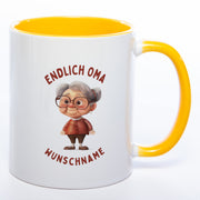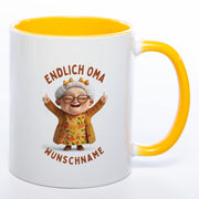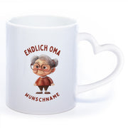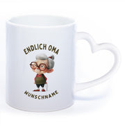 "Endlich Oma"-Tasse mit Wunschnamen - spülmaschinenfest