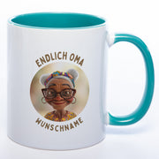 "Endlich Oma"-Tasse mit Wunschnamen - weitere Motive - spülmaschinenfest