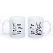 Eine Tasse, die nicht nur mit ihrem lustigen Hasenmotiv verzaubert, sondern auch eine unmissverständliche Lebensweisheit mit sich bringt – "Eier sucht man nicht, Eier hat man." Für alle, die wissen, dass es im Leben auf die Eier ankommt!