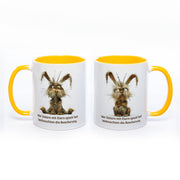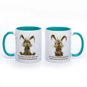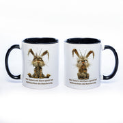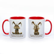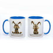 Motiv - Tasse mit Spruch und Hase: Wer Ostern mit Eiern spielt hat Weihnachten die Bescherung.- spülmaschinenfest