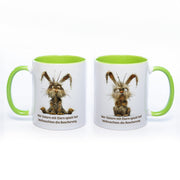 Eine Tasse, die nicht nur mit ihrem lustigen Hasenmotiv verzaubert, sondern auch mit ihrem lustigen Spruch:Wer Ostern mit Eiern spielt hat Weihnachten die Bescherung.