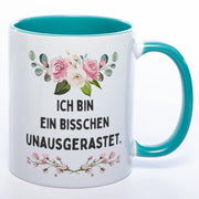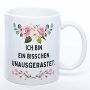 Blümchen-Tasse mit Spruch "Ich bin ein bisschen unausgerastet" - Lustige Kaffeetasse spülmaschinenfest