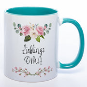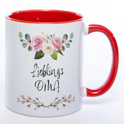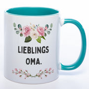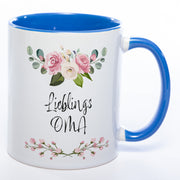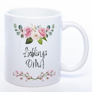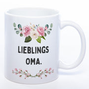 Blümchen-Tasse mit Spruch "Lieblings Oma." - Kaffeetasse für die allerliebste Oma - spülmaschinenfest
