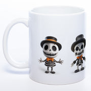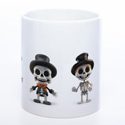 Hui, wer klappert denn da? Das sind unsere süßen Skelettons, die auf dieser zauberhaften Halloween-Tasse ein Stelldichein geben!