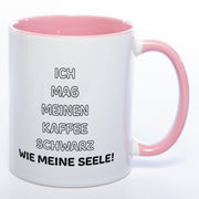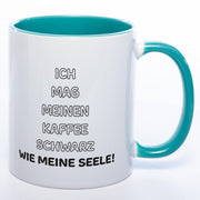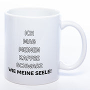 Spülmaschinenfeste Tasse mit Spruch "Ich mag meinen Kaffee schwarz wie meine Seele!" - Lustige Kaffeetasse