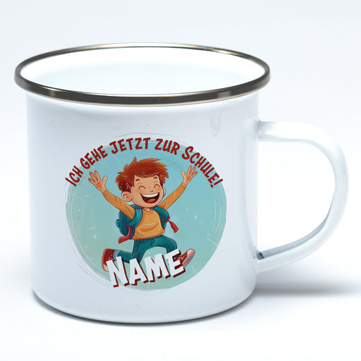 Emailletasse zur Einschulung Motiv Junge und Wunschname- Tolle Geschenkidee