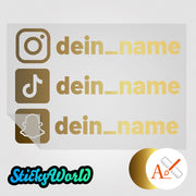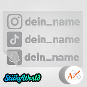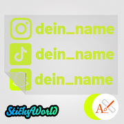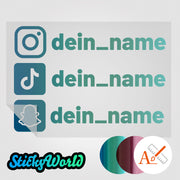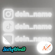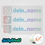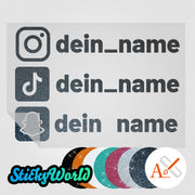 Dreifacher Social Media Sticker mit Deinem Namen in Sonderfarben GLITZER, REFLEKTOR, HOLO, GOLD, SILBER, NEON, FARBWECHSEL, MILCHGLAS