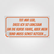 Sticker "Tut mir leid dass ich so langsam um die Kurve fahre, aber sonst muss mein Hund kotzen..."  | Foliensticker in 3 Größen