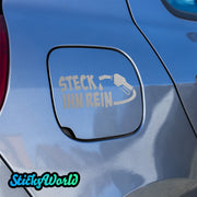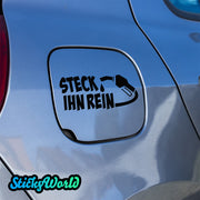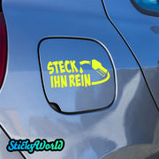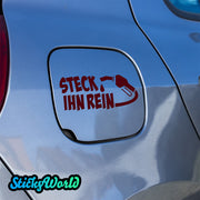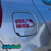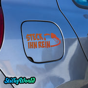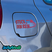 Hol Dir den frechen Tankdeckel-Sticker "Steck ihn rein" im einzigartigen StickyWorld-Design!