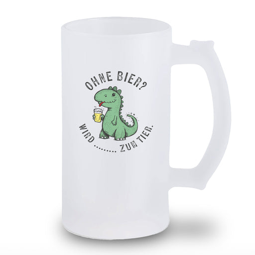 Bierkrug aus satiniertem Glas "Ohne Bier? Wird [Name] zum Tier."