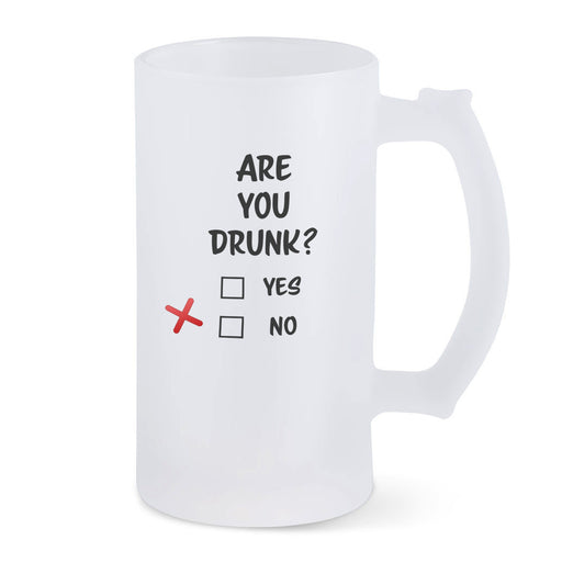 Bierkrug aus satiniertem Glas mit Spruch Are you drunk?