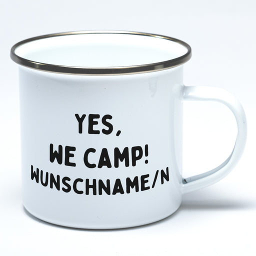 YES, WE CAMP! Personalisierbare Emailletasse Hey, Camper! Du liebst das Campen und die gemütliche Atmosphäre und möchtest das auch klar zum Ausdr...
