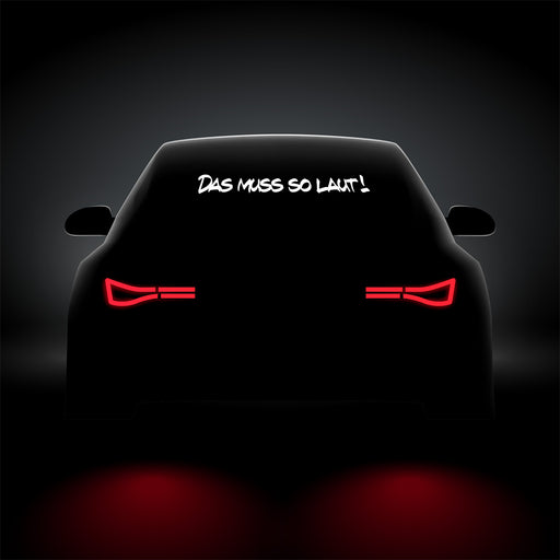 Zeig jedem, wer der Boss auf der Strasse ist, mit dem Schriftzug "DAS MUSS SO LAUT!" für die Heckscheibekscheibe. Waschstraßenfest und lange halt...