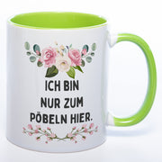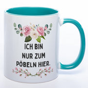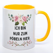 Blümchen-Tasse mit Spruch "Ich bin nur zum Pöbeln hier" - Lustige Kaffeetasse spülmaschinenfest